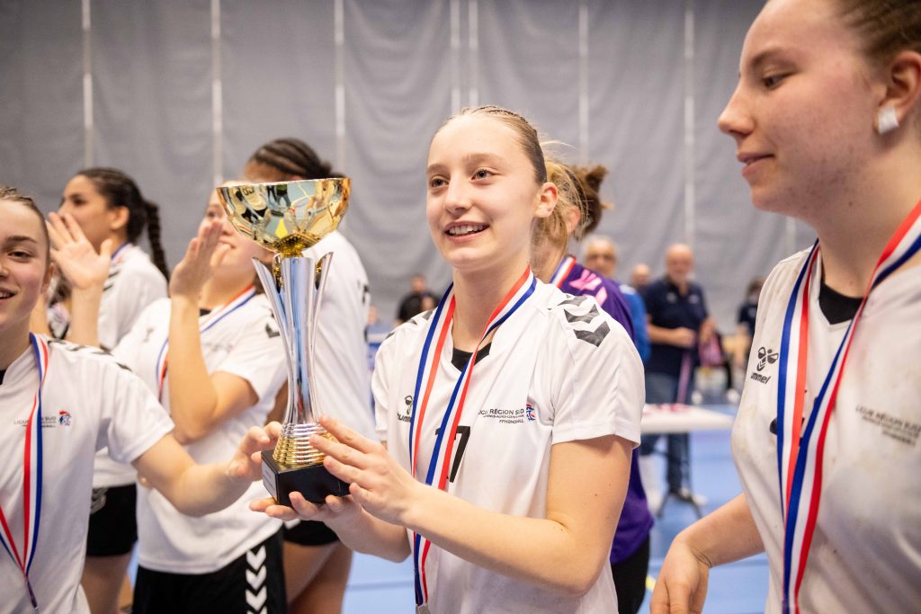 Quatre ans après, la Ligue Grand Est est de nouveau sur la plus haute marche du podium aux Interligues féminins. Les filles emmenées par Alexandre Bailly ont remporté la finale face à Sud-Corse dimanche soir, dans le gymnase de Quefets à Tournefeuille rempli à ras bord. Menées d’un but à la pause (7-8), les Grand Estoises ont renversé la vapeur après la pause pour finalement l’emporter de cinq buts, 19-14. Ce titre est le deuxième de l’histoire récente pour la Ligue Grand Est, après celui de 2022, dans un nouveau cadre d’organisation pour la compétition. « C’était une organisation de qualité, la première en conditions réelles pour le club de Tournefeuille, après la compétition de rattrapage de 2021 », confirme Eric Baradat, le responsable du Programme de Performance Fédéral (PPF) féminin à la FFHandball. « Il y a tout lieu d’être satisfait d’avoir attribué à ce club l’organisation des Interligues pour la saison prochaine également. »